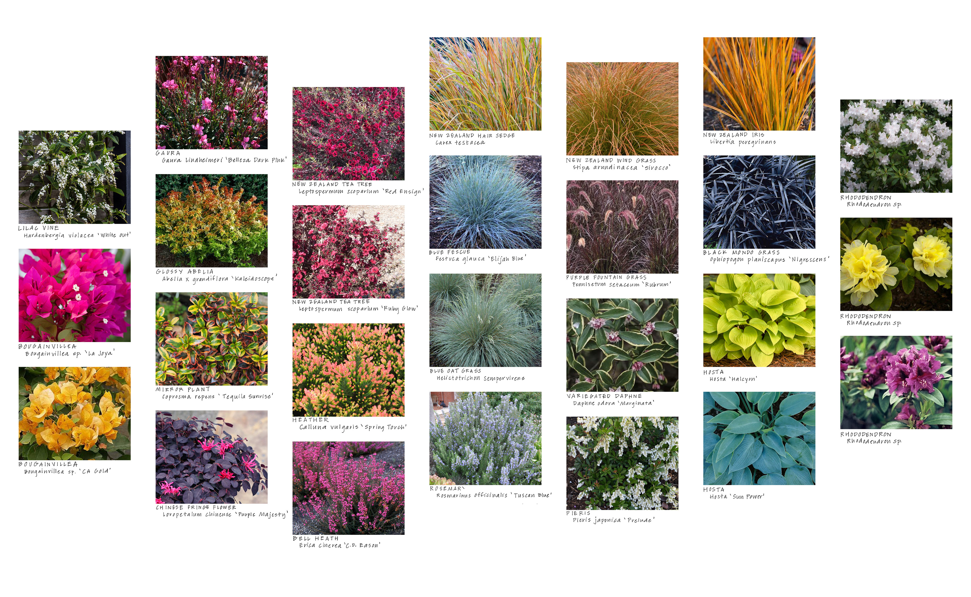 Plants were primarily chosen based on color, texture, and water needs. In addition to the plant list (above,) the backyard features Birds of Paradise, ferns, sage, clematis, Rubus spp. (raspberries and blackberries,) Vaccinium spp., various succulents, and other groundcovers.