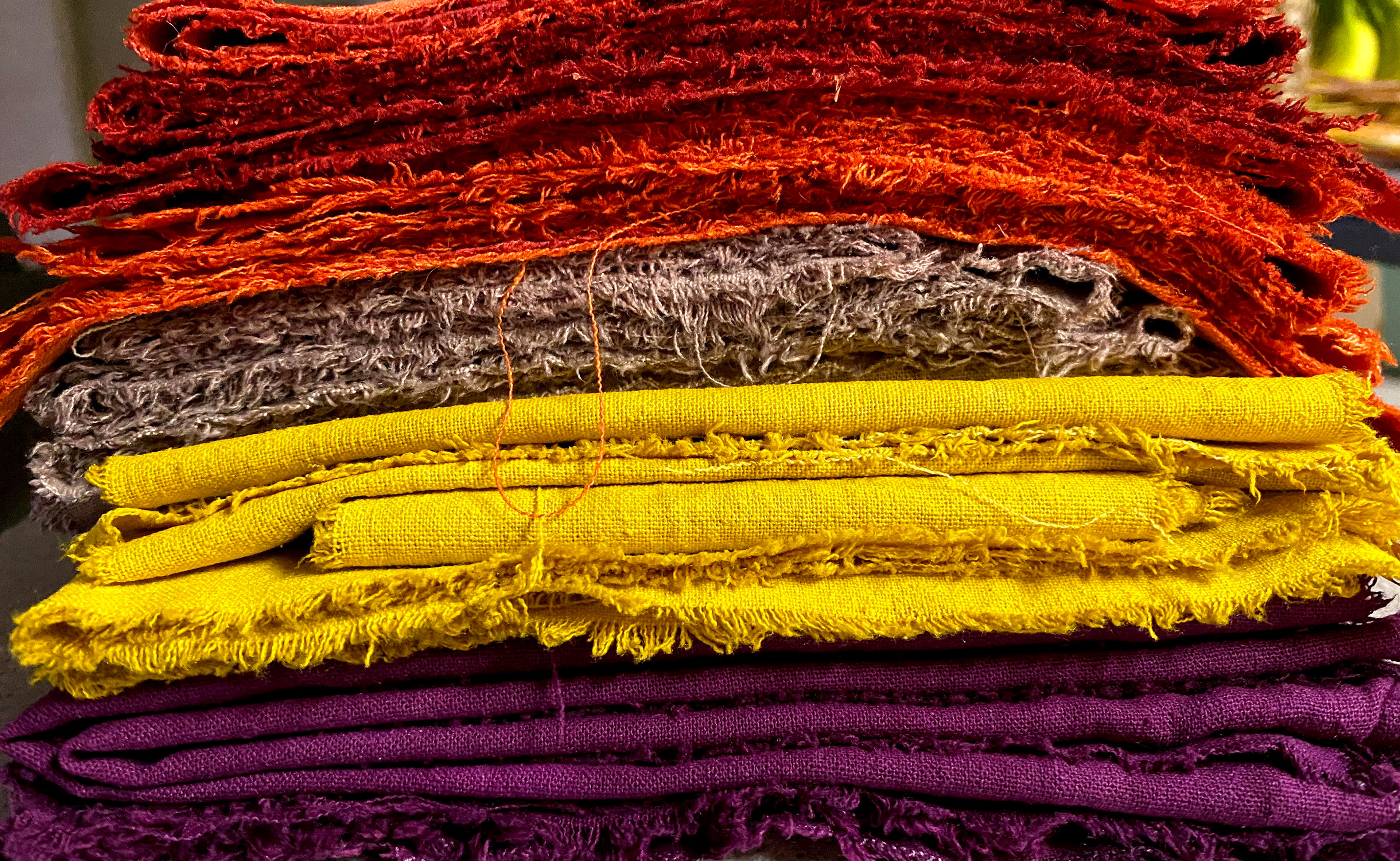 DYES: indigo, madder root, Hopi sunflower seeds, marigold, cochineal, alkanet, sandalwood, turmeric