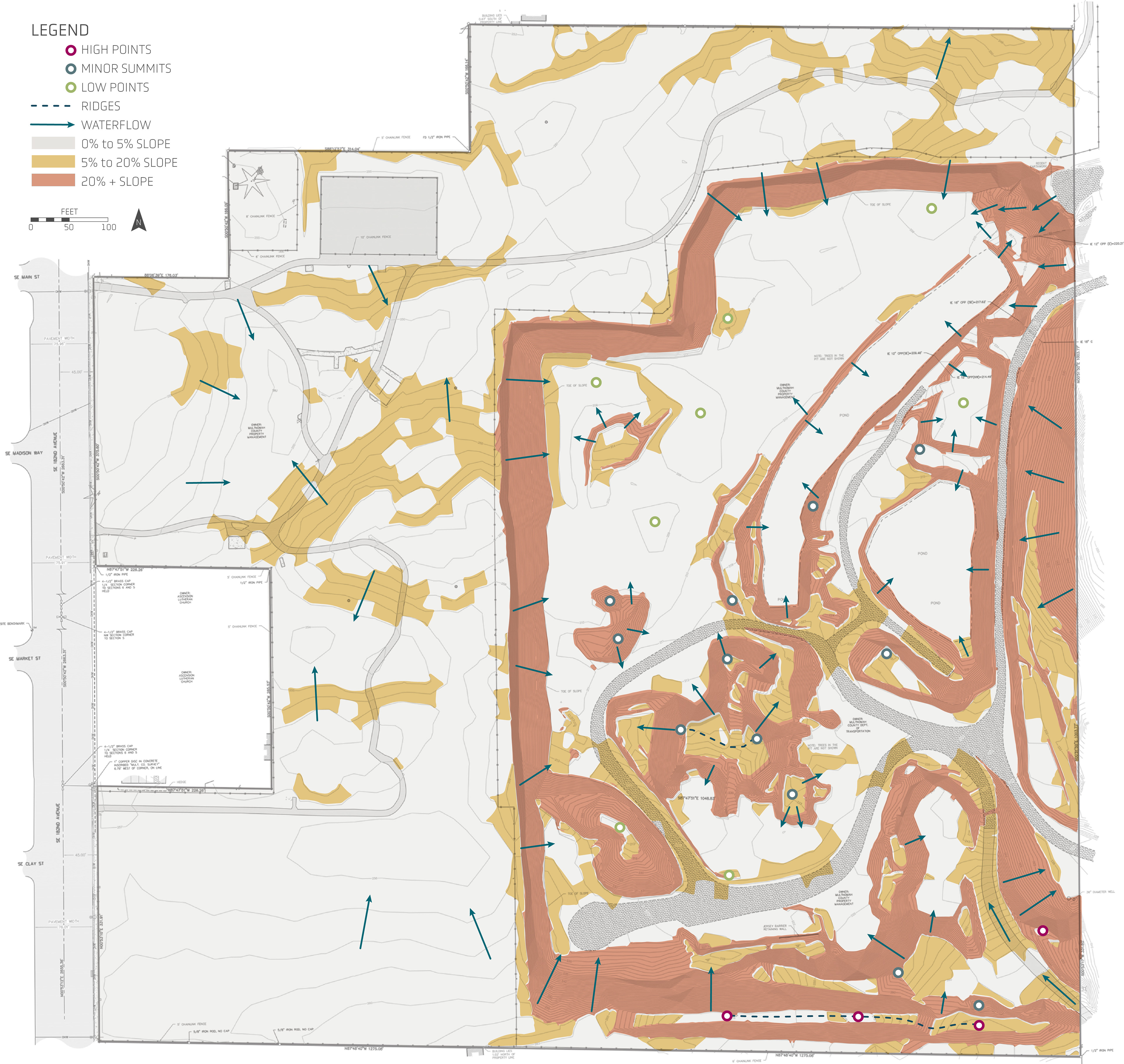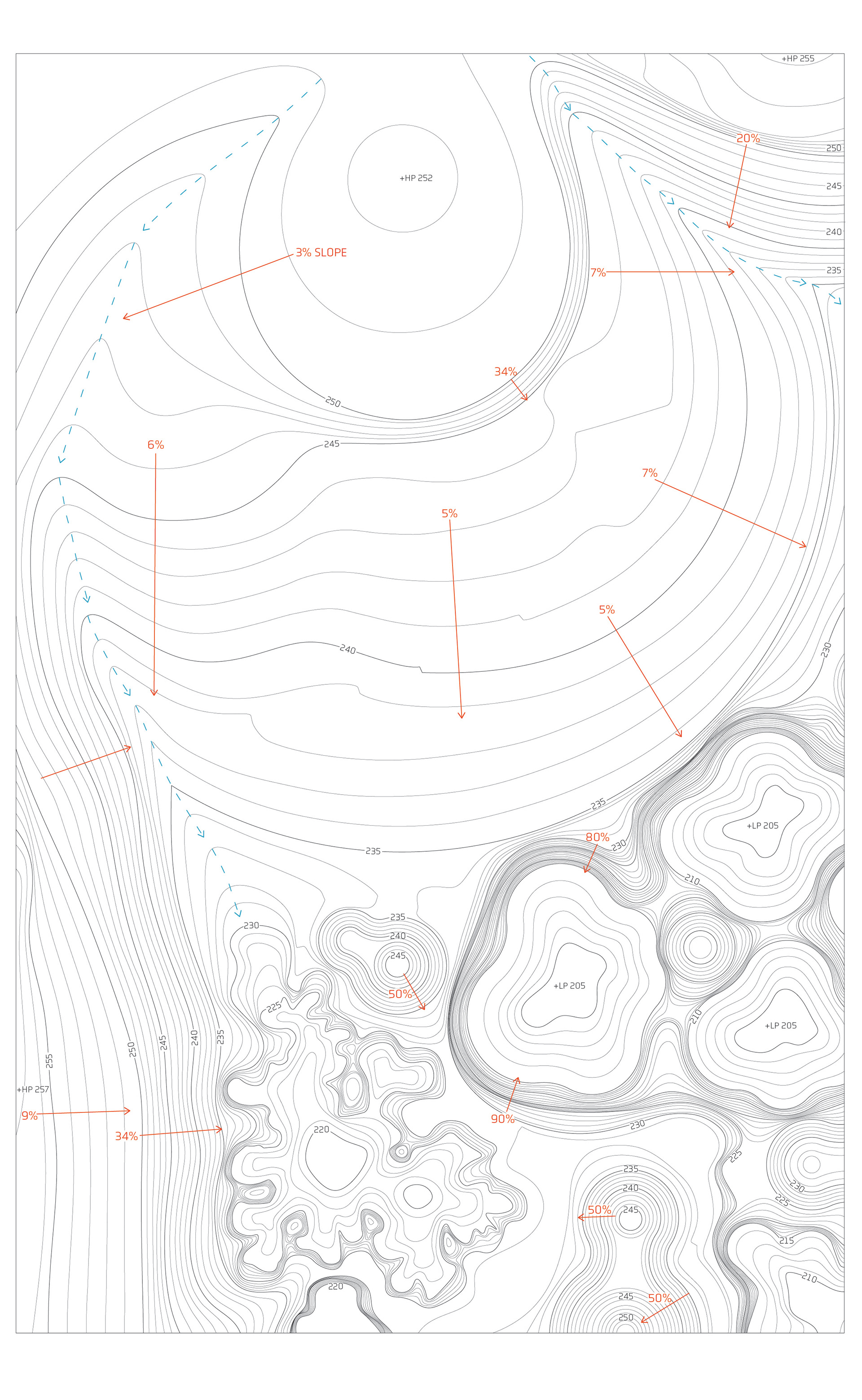 With a focus on landform, we evaluated the existing grade based on contour map.